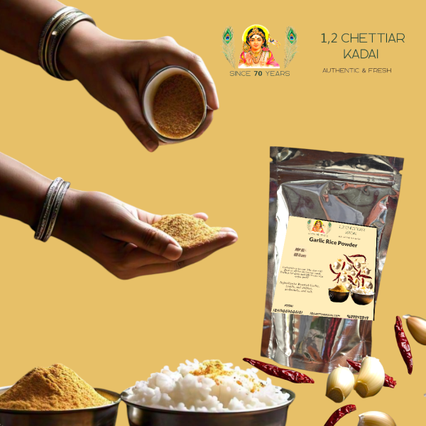 Our Garlic Rice Podi is a mouthwatering blend of roasted spices, lentils, and garlic, carefully crafted to elevate your meals. With a perfect balance of flavors, this podi adds a delicious twist to your rice and idlis. The aromatic garlic flavor will leave you craving for more!